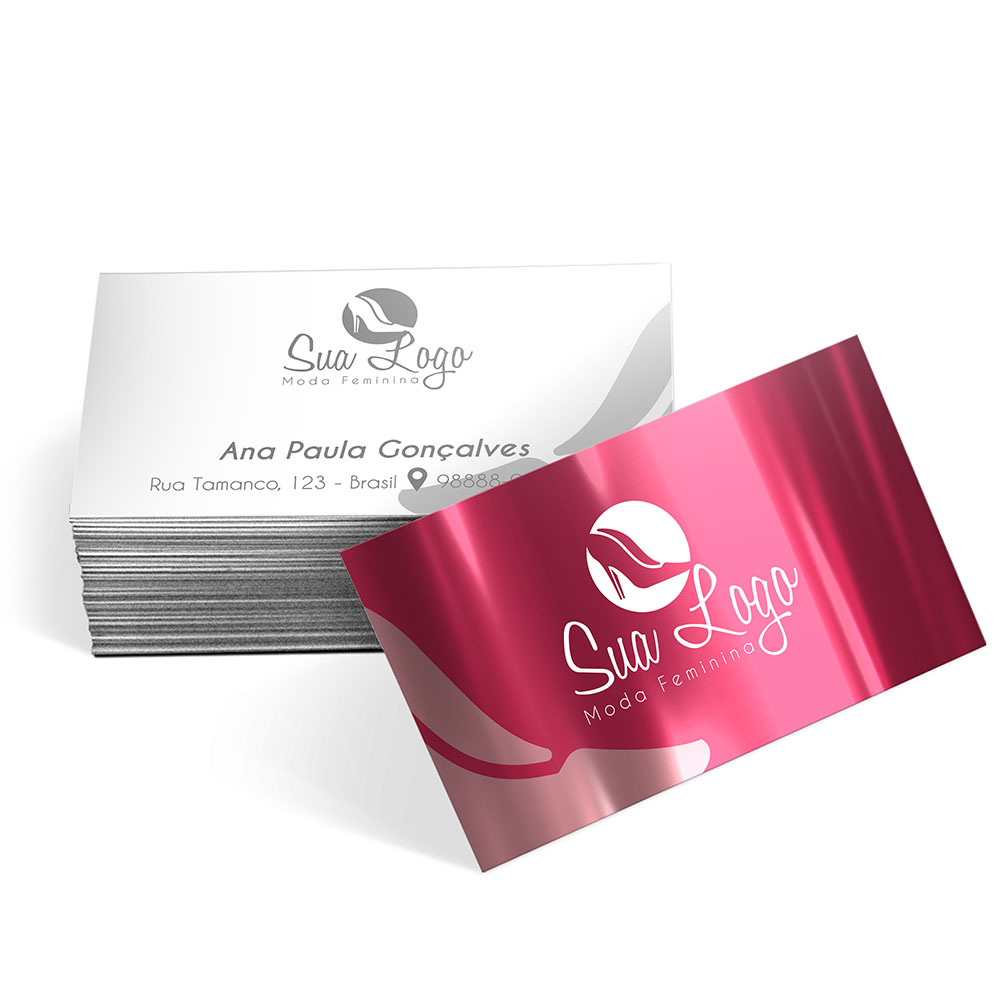 CARTÕES DE VISITA PAPÉIS ESPECIAIS METALIZADO FRENTE COM TINTA BRANCA 250G SEM VERNIZ Colorido frente e preto e branco verso - 100 un.